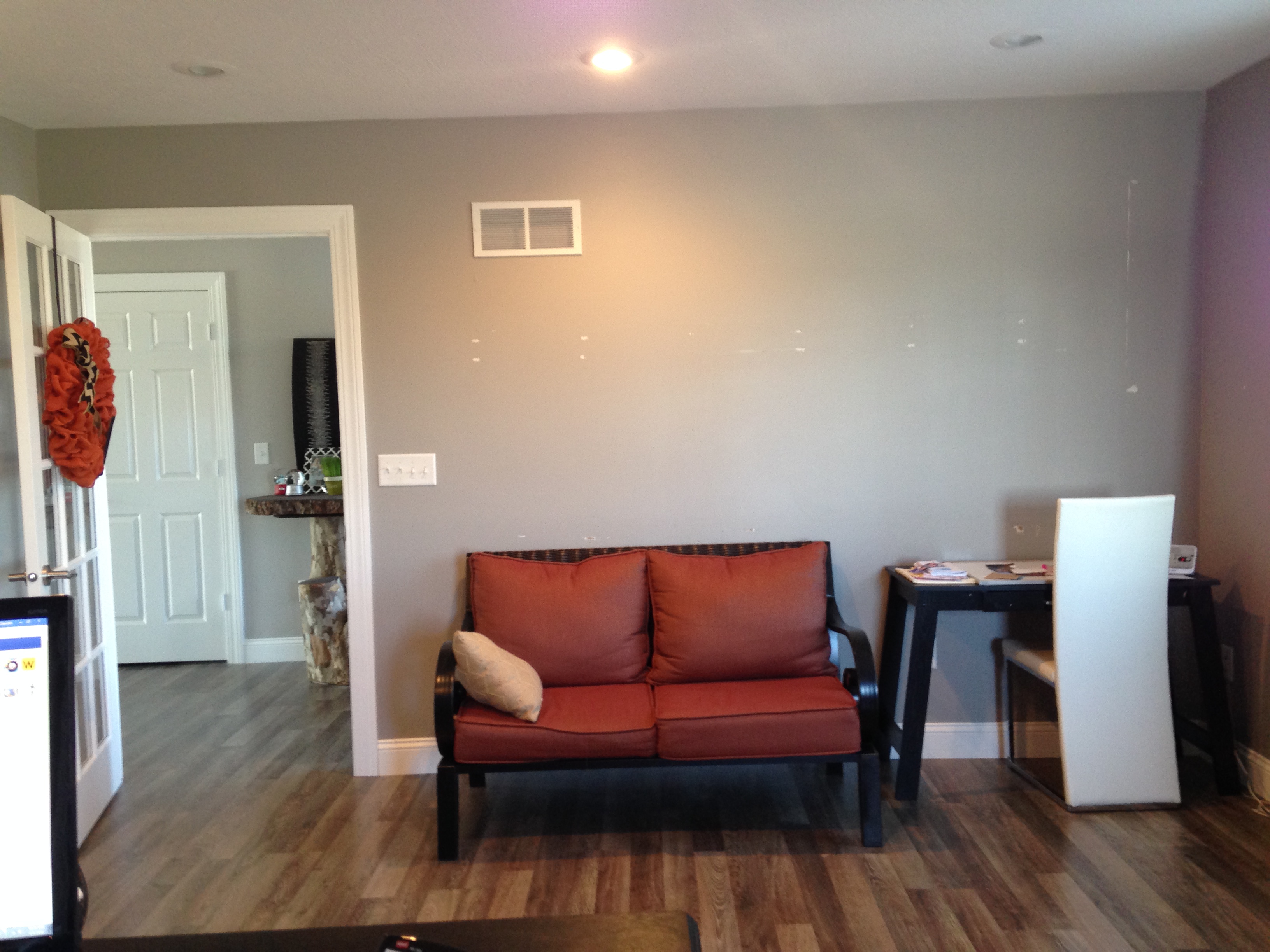 Blessed with a new building for our business, that left even more space for my home office. No more cabinets, no more production here. at . all. That meant lots of boring, blank space. The worst part, lots of paint chips, touch ups and dry wall mud to be done.... or maybe not!